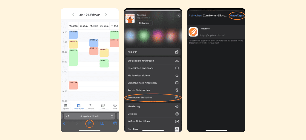 Du willst noch schneller auf Teachino zugreifen? Wir zeigen Dir, wie das geht. Du kannst Teachino nämlich ganz einfach auf dem Homescreen Deines Smartphones ablegen.