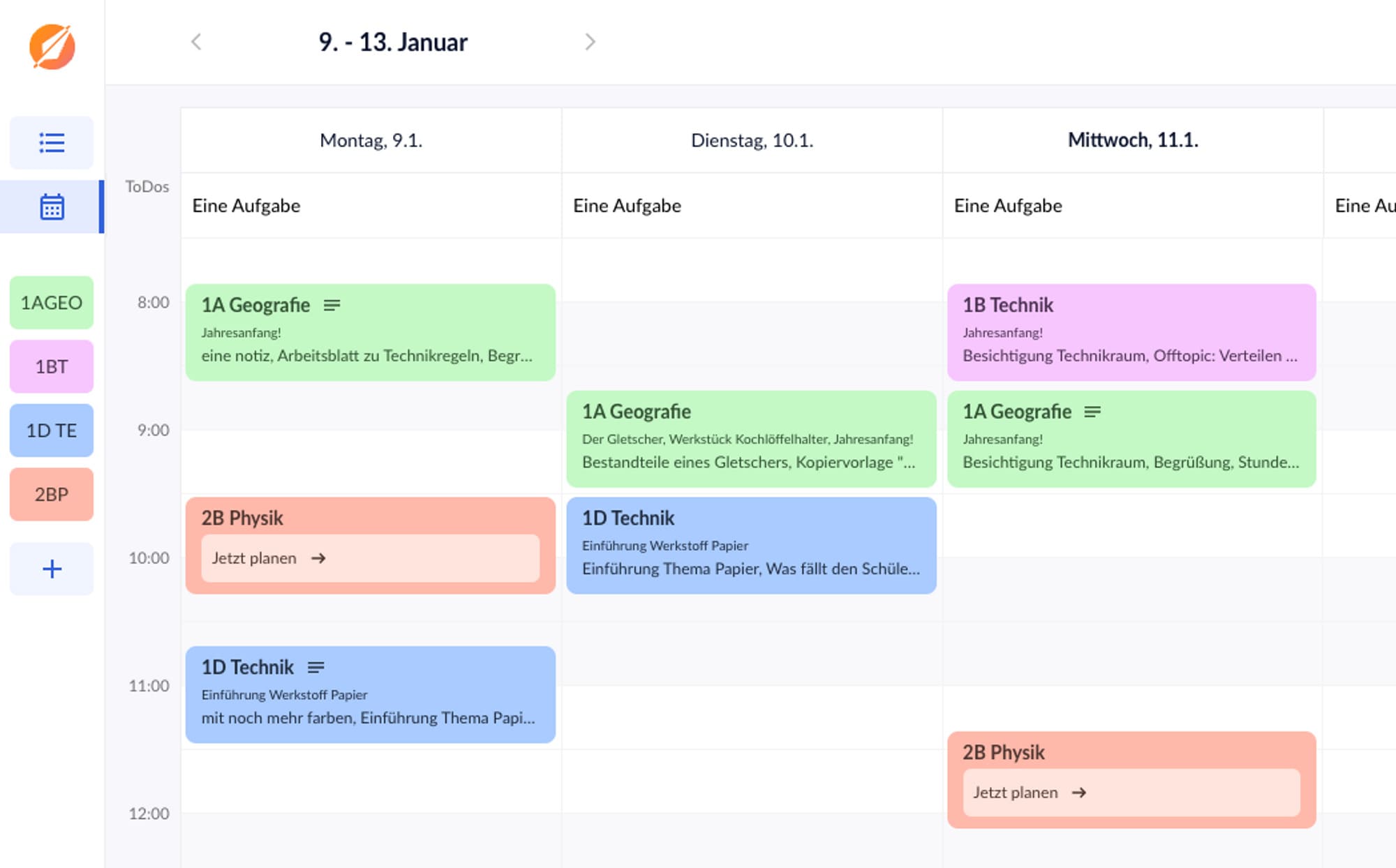 Wir haben Farben in Deine Teachino-Welt gebracht, um dir eine bessere Übersicht zu den verscheidenen Klassen zu geben. So sieht Du auf einen Blick die gesamte Schulwoche und alles, was Du geplant hast.